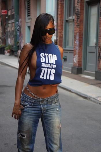Still staring? Inspired by the chaotic energy of early 2000s celebrity street style, Chxrry, stars in the launch of our first-ever merch drop, the limited-edition Stop Staring At My Zits Tee.
