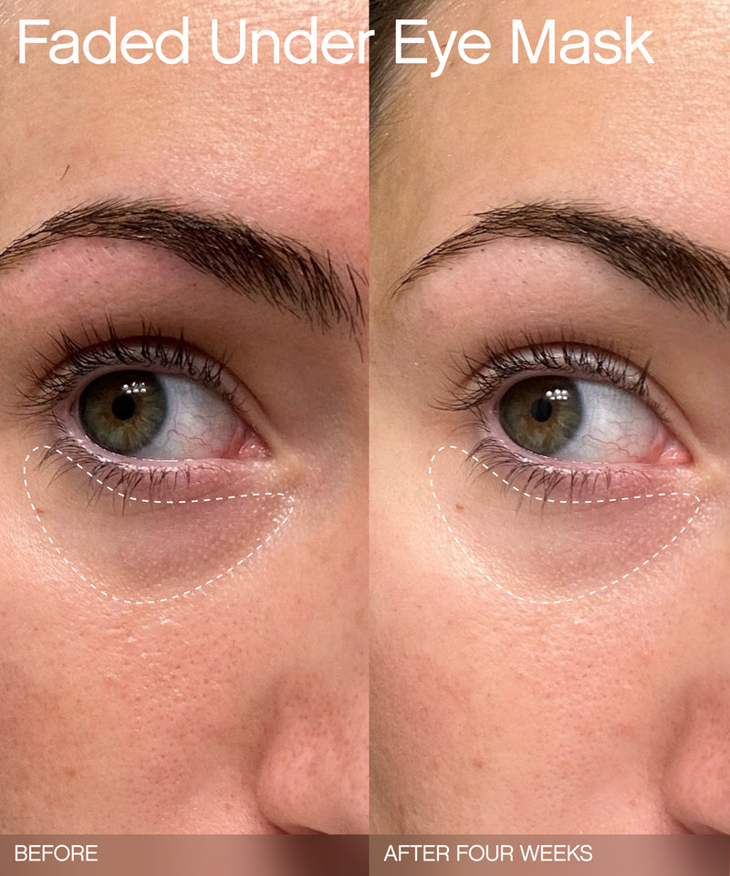 Apply to clean under-eye area for 15 minutes. Use two to three times a week. For stubborn discoloration, follow up with Faded Serum.