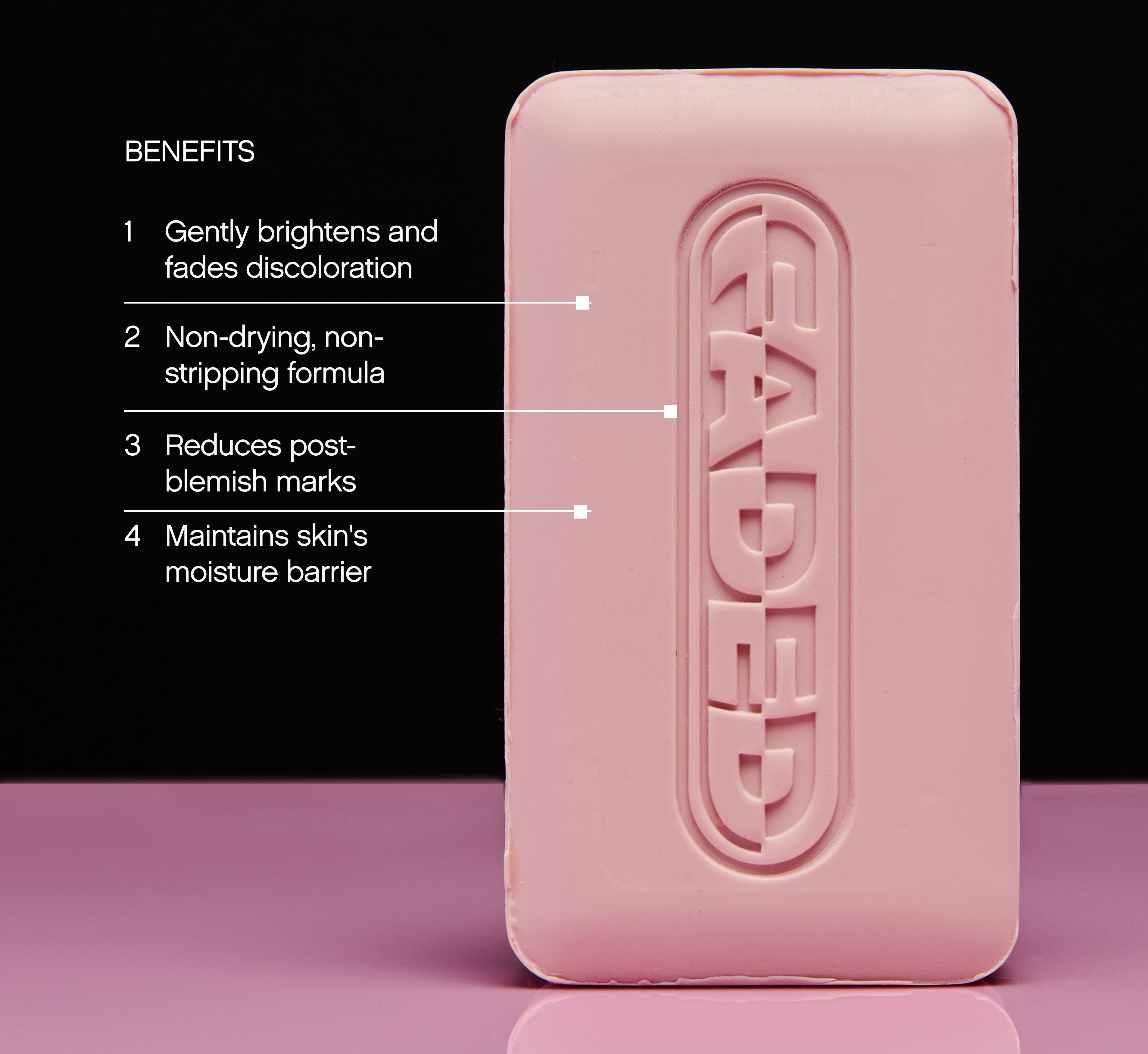 Work Faded Brightening & Cleansing Bar into a fine, rich lather. Let it sit on skin for at least one minute. Rinse thoroughly.