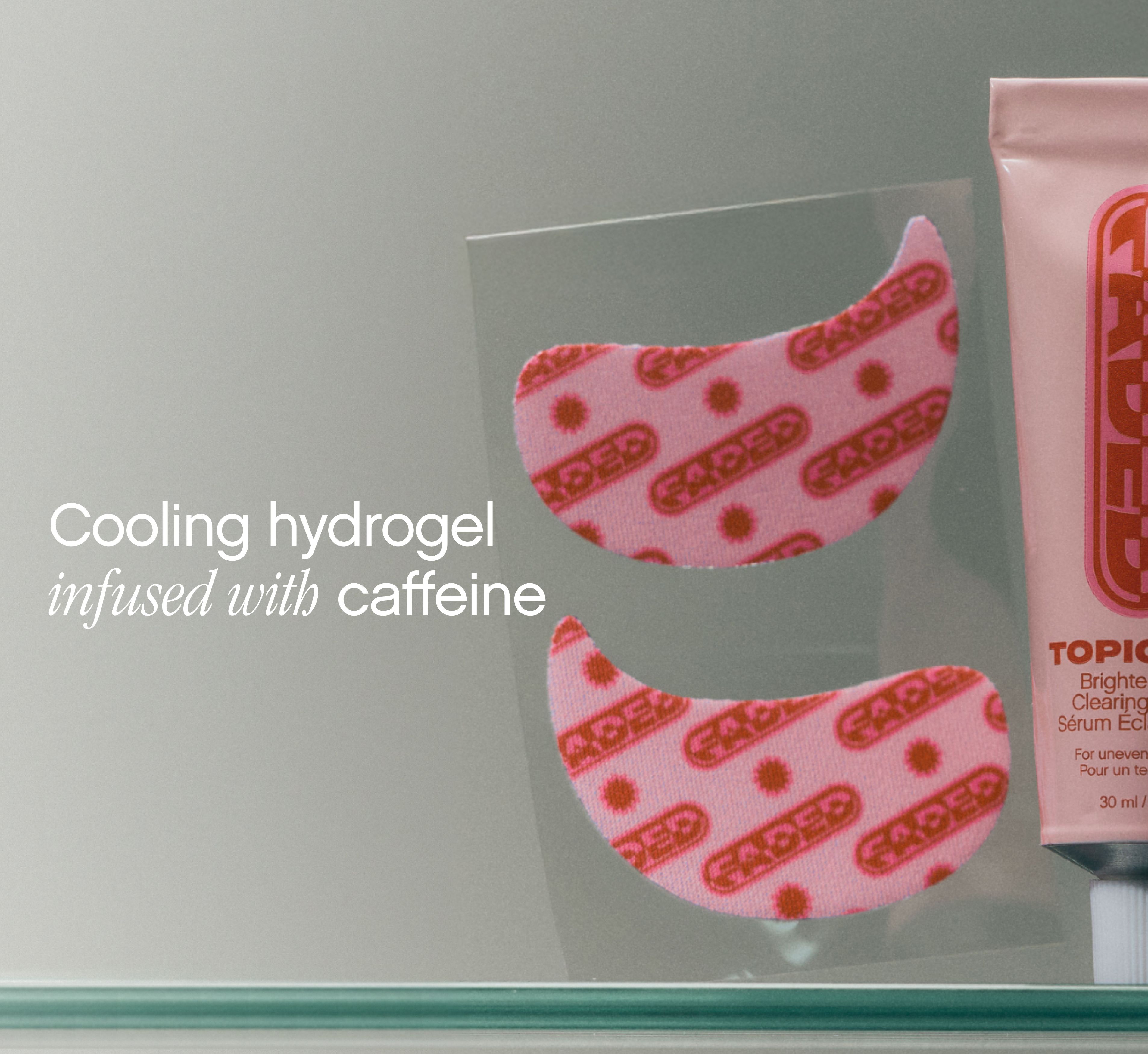 Apply Faded Brightening Eye Masks to clean under-eye area for 15 minutes. Use two to three times a week. For stubborn discoloration, follow up with Faded Serum. For an extra cool treat, refrigerate the patches prior to use.