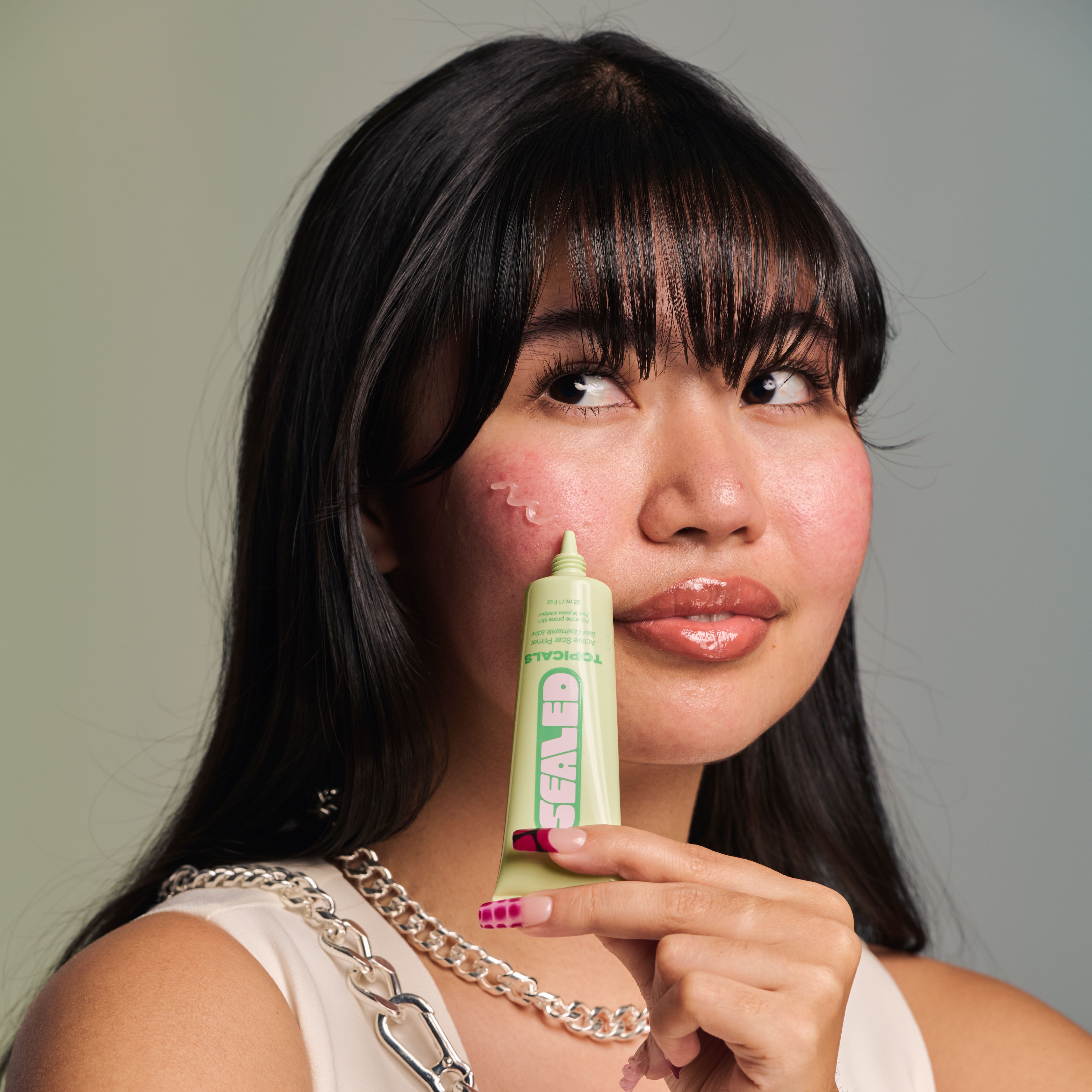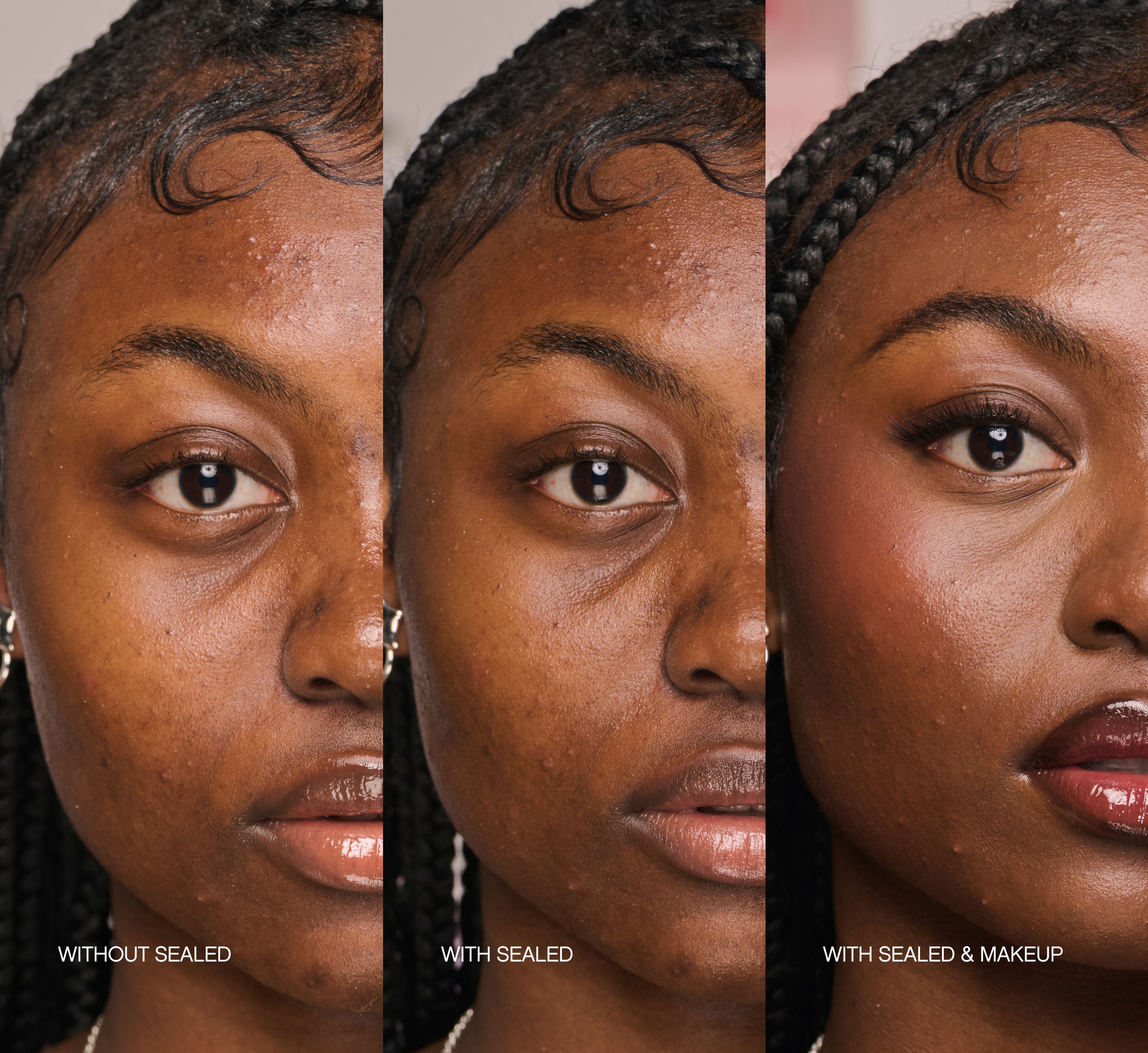 To Prime Before Makeup: After applying moisturizer and sunscreen, dab a small amount of Sealed onto pitted scars or enlarged pores. Let product sit for 30 seconds before applying makeup.