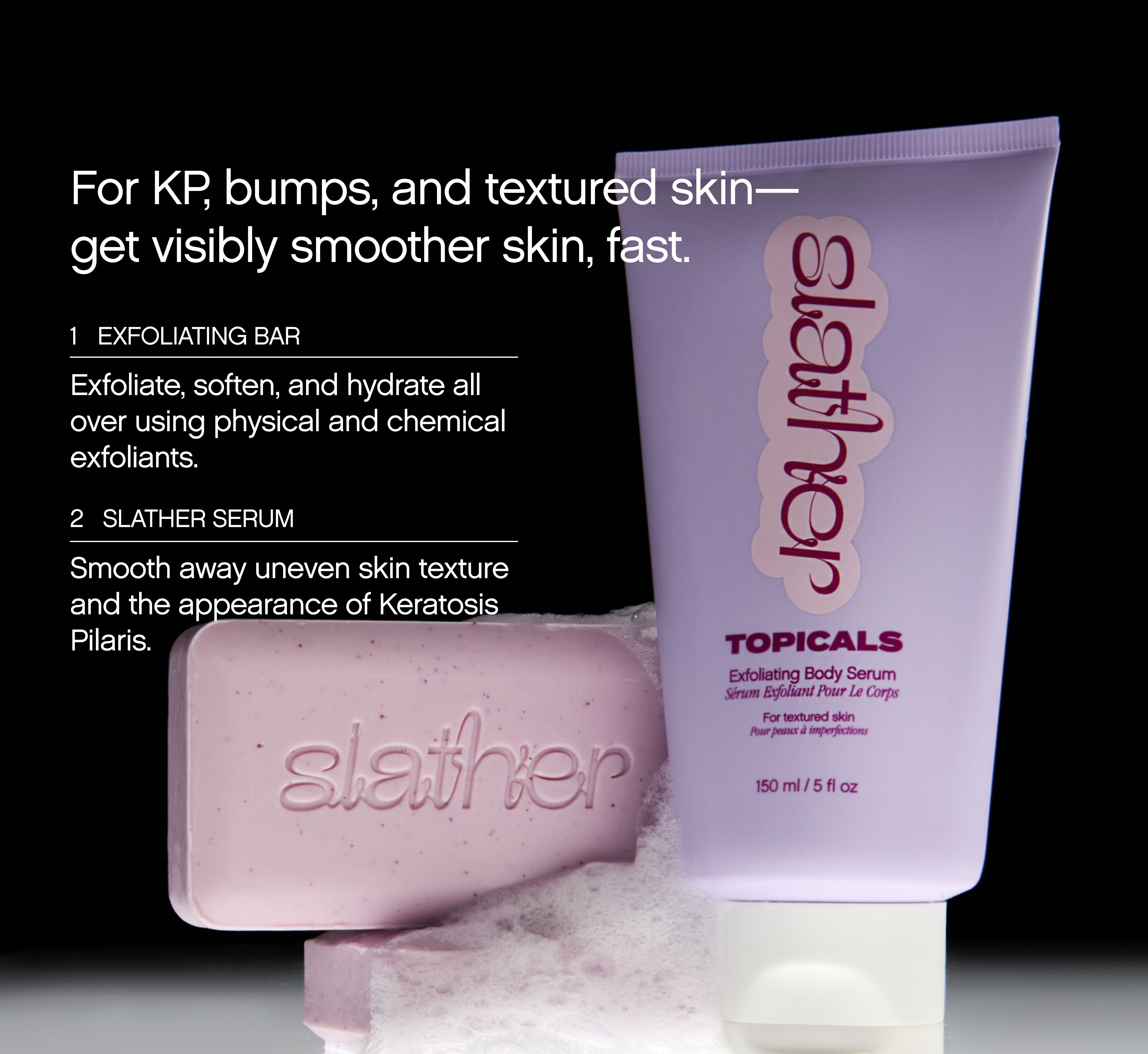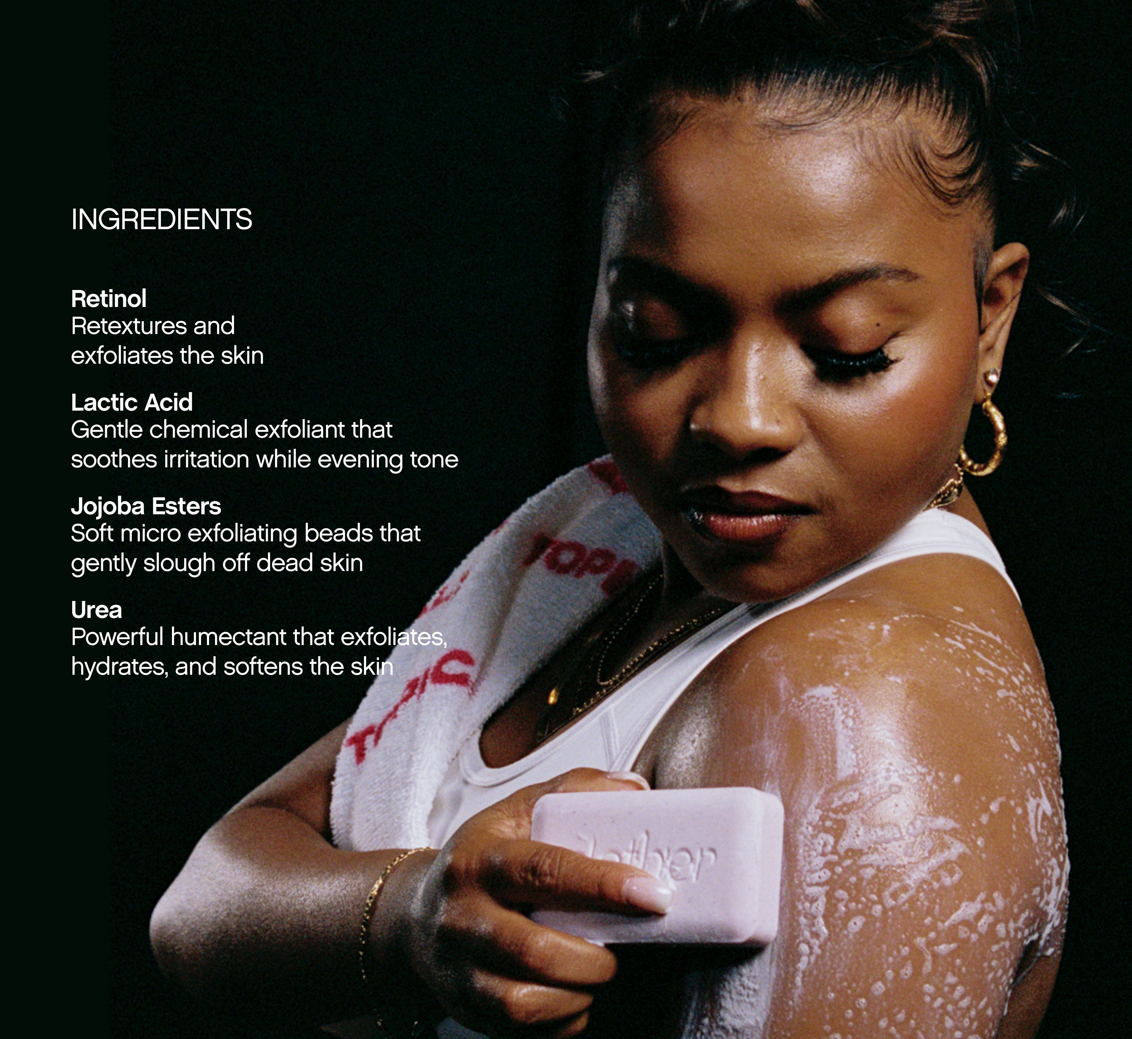 *Results are from 4 weeks of daily use of Slather Exfoliating & Cleansing Bar. Results may vary based on routine and individual skin.