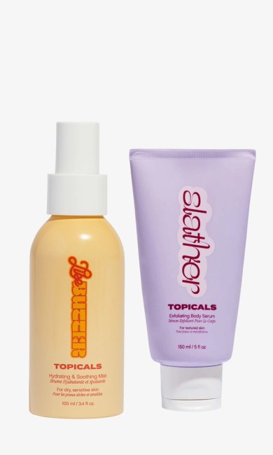 Get the soft touch feel with this duo featuring Slather, a milky body serum that exfoliates dead skin and clogged pores, and Like Butter Mist, packed with powerful botanicals that help to restore dry, flaky, skin.